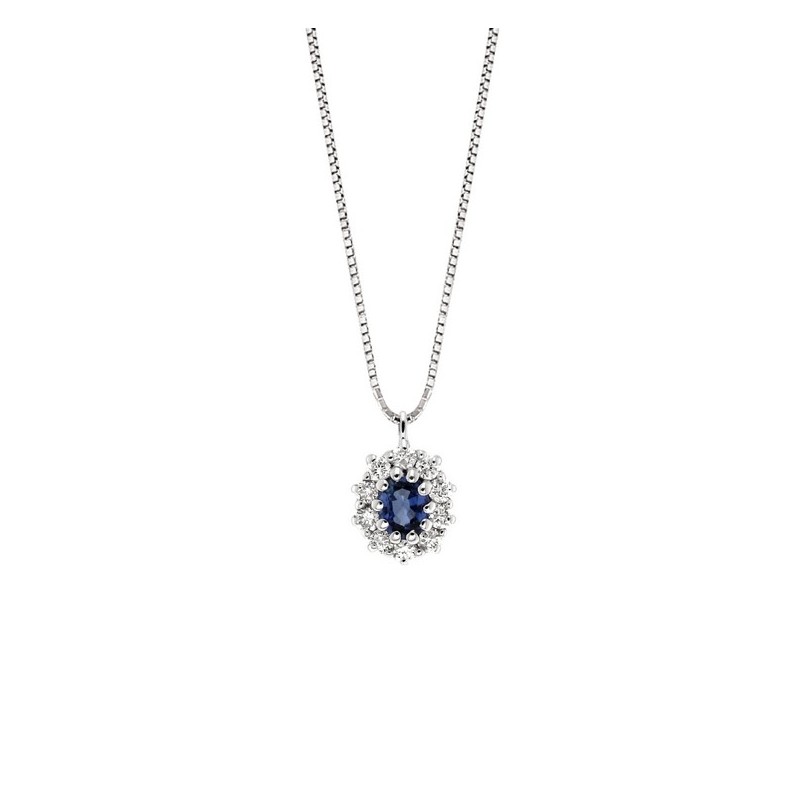 18K Gold Sapphire and Diamond Pendant with 42 cm Chain